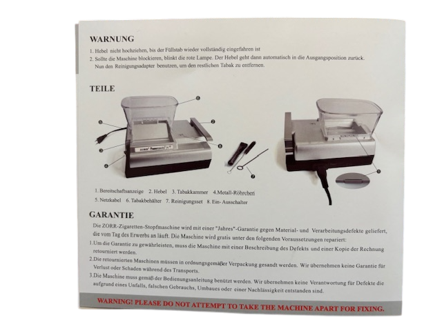 Zorr powermatic 4 plus Elektrische sigarettenmaker- sigarettenmachine
